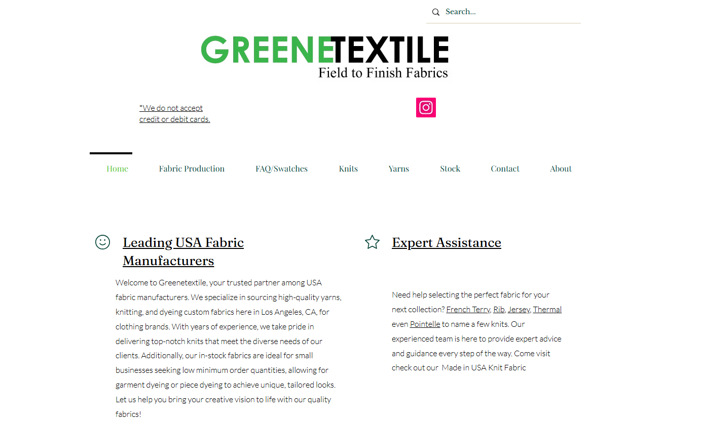 Greene Textile is a knit cotton fabrics firm that was founded in modern times and is located in Montebello, California. It also has more than 4,000 fabric options, such as organic cotton, French terry, rib knit, and bamboo mixes. Circular knitting machines, dyeing baths and finishing equipment are used in the assembly line. They have designers, quality-control personnel, and production line employees. Fabrics are tested on stretch, color fastness, shrinkage and pilling. Greene Textile focuses on short turn-around and small minimum order, which is most suitable to designers and start-ups. The company is a believer in sustainability through organic cotton sourcing, and OEKO TEX Standard 100 certified.