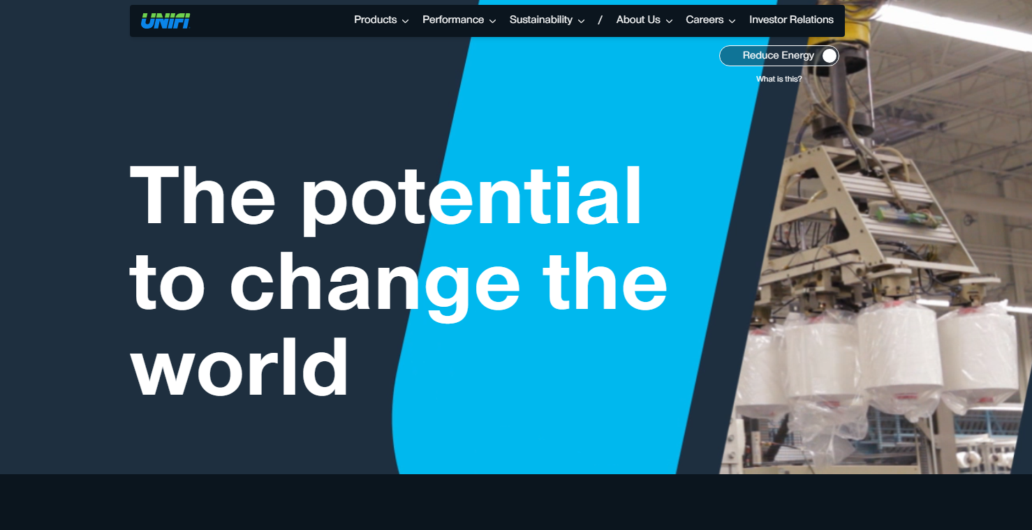 Unifi Manufacturing, Inc., which started in 1971 and is located in Greensboro, North Carolina, is reputed to have pioneered in recycled fibers (REPREVE) and cotton yarn. Although their image is mostly built around recycled polyester, Unifi has also purchased cotton yarn manufacturers in the 1990s, and has textile plants that deal with cotton-blended yarns. The company employs approximately 2,900 people (as of 2024) and is based in a number of plants in the U.S. They spin on open-end spinning machines and on ring spinning machines, carry out quality tests (tensile strength, fiber length, impurity), and perform finishing laboratories. They have sustainability credentials such as traceability of cotton and recycled content and are ISO 9001 and OEKO TEX certified.