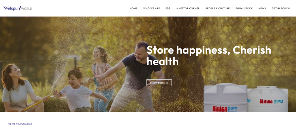 Welspun India (since renamed Welspun Living) was established in 1985, and is based in Mumbai, India with significant manufacturing facilities in Vapi (Gujarat) and Anjar (Kutch, Gujarat). It deals with home-textile fabrics including bed linen, terry towels, rugs and yarns. It focuses on international certifications (OEKO-Tex etc.), in-house labs of home-textile finishing, CO 2 -emission regulation and being green. The company is distinguished by its great world brand presence, massive export base to US and Europe, vertical integration and innovations in home fabrics.