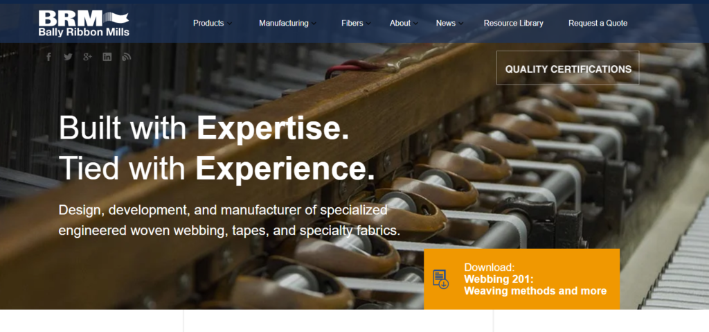 Bally Ribbon Mills was started in 1923 in Bally Pennsylvania. It has now added the California facilities, which cover 150, 000 square feet. More than 400 workers operate hi-tech Jacquard looms and narrow-width machines. Bally deals in narrow fabrics such as webbings, tapes, and medical meshes. Their textiles are used in the aerospace, defense, and healthcare sectors. Tensile strength, dye fastness and dimensional stability tests are quality control measures. AS9100 certification provides adherence to the aviation standards. Bally boasts of precision and craftsmanship in his work. Their proprietary solutions sustain advanced applications including seatbelts and spacecrafts. Low-water dyeing technologies are among the sustainability efforts. Bally is a blend of tradition and modern innovation in weaving.