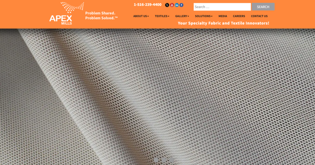 Apex Mills was started in 1943 in Airmont, New York and then expanded into North Carolina. The facilities of the company occupy 400,000 square feet and have approximately 300 specialists. It has more than 150 narrow looms and coating lines that work every day. Apex manufactures industrial, medical, and defense engineered textiles. Their labs are used in testing bursting strength, flame resistance, and antimicrobial performance. The ISO 13485 certification guarantees medical-grade fabrics compliance. Apex is distinguished by customizing. They also develop fabrics to address special engineering issues. Quick-turn prototyping enables rapid delivery of urgent customers. Sustainability campaigns revolve around dyeing that is water-efficient and recyclable materials. Apex designs fabrics to be used in extreme conditions.